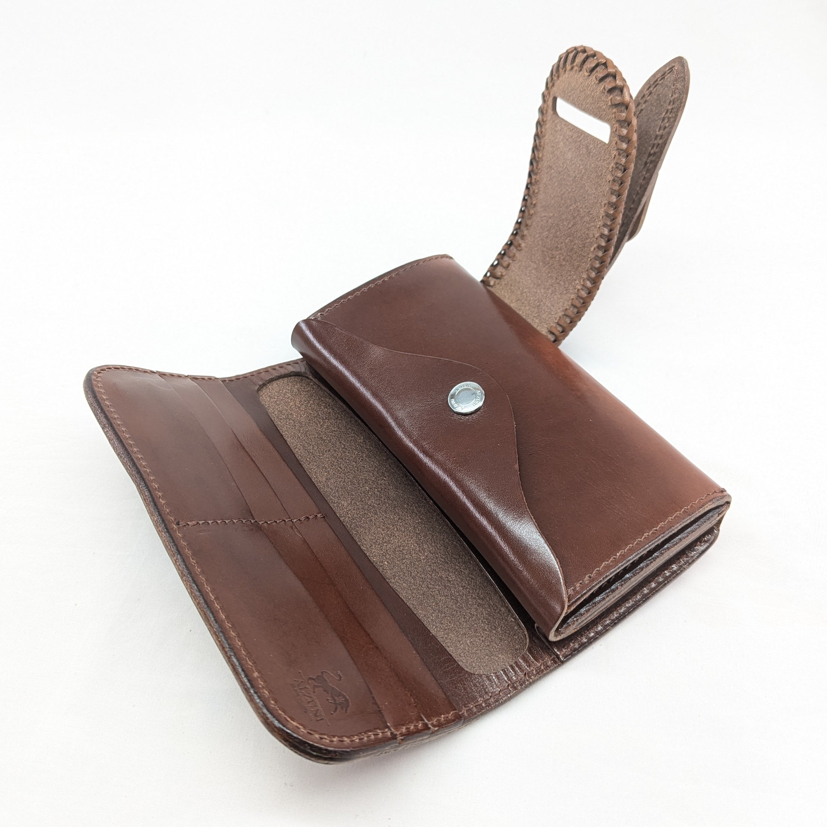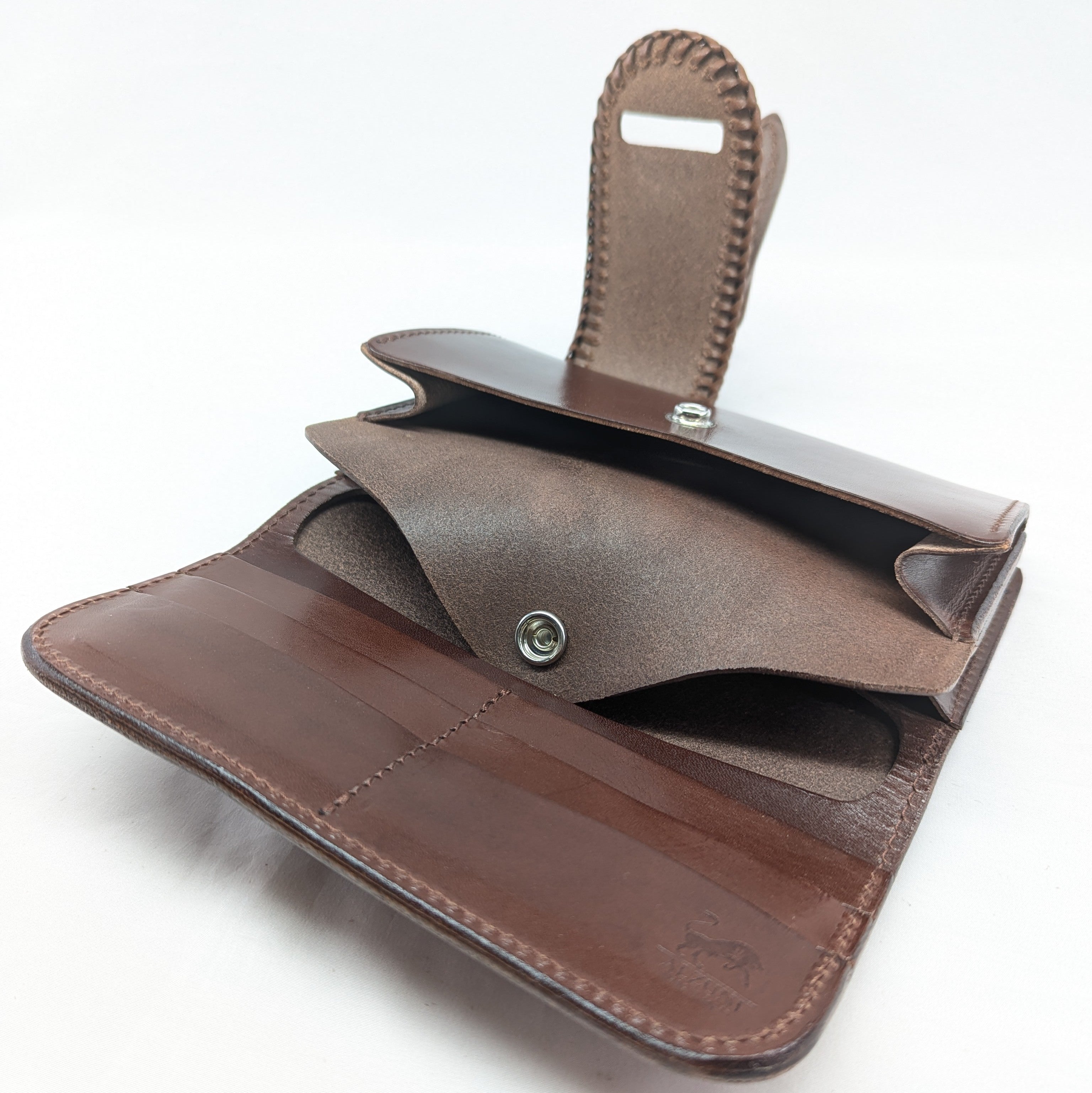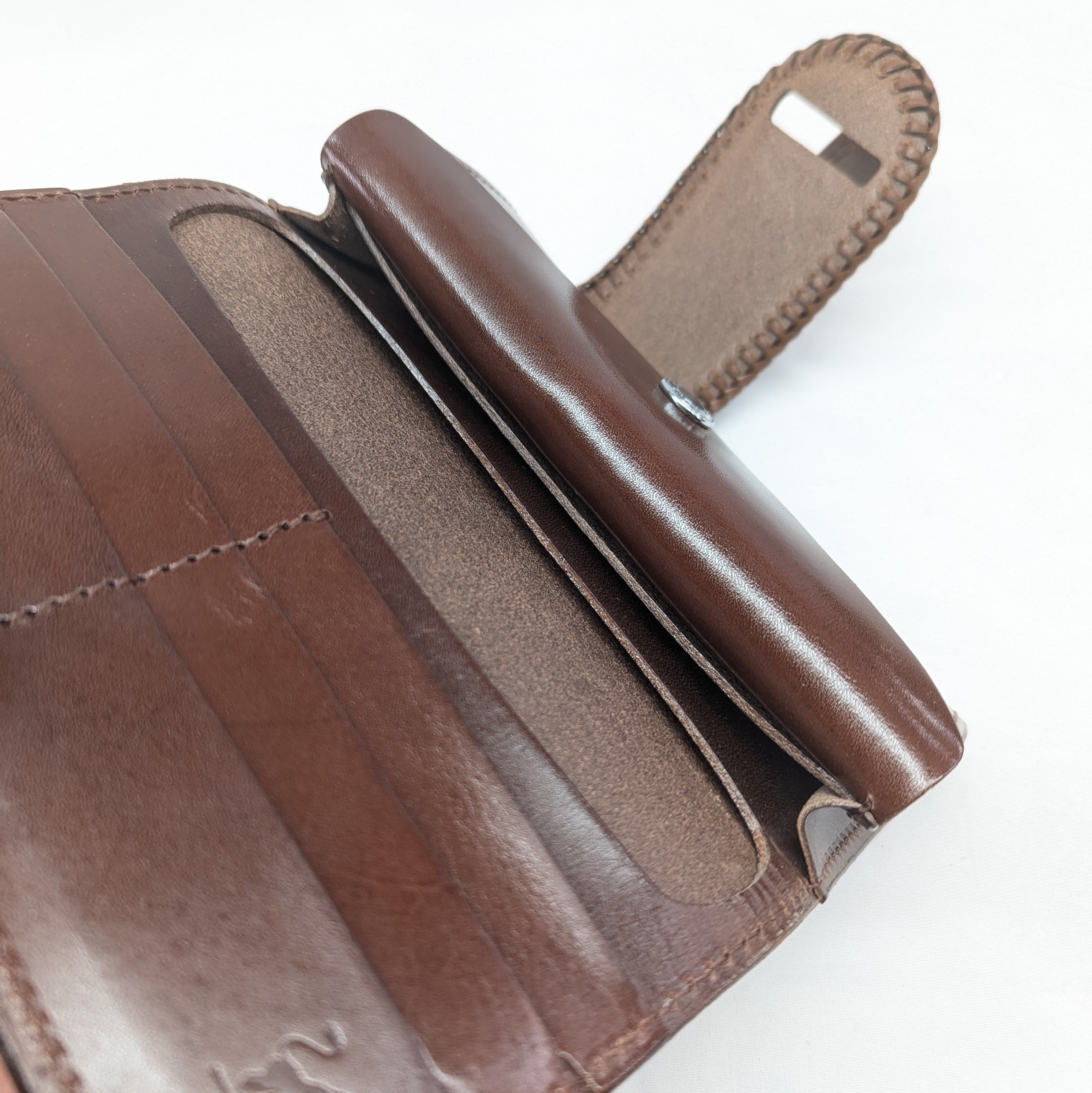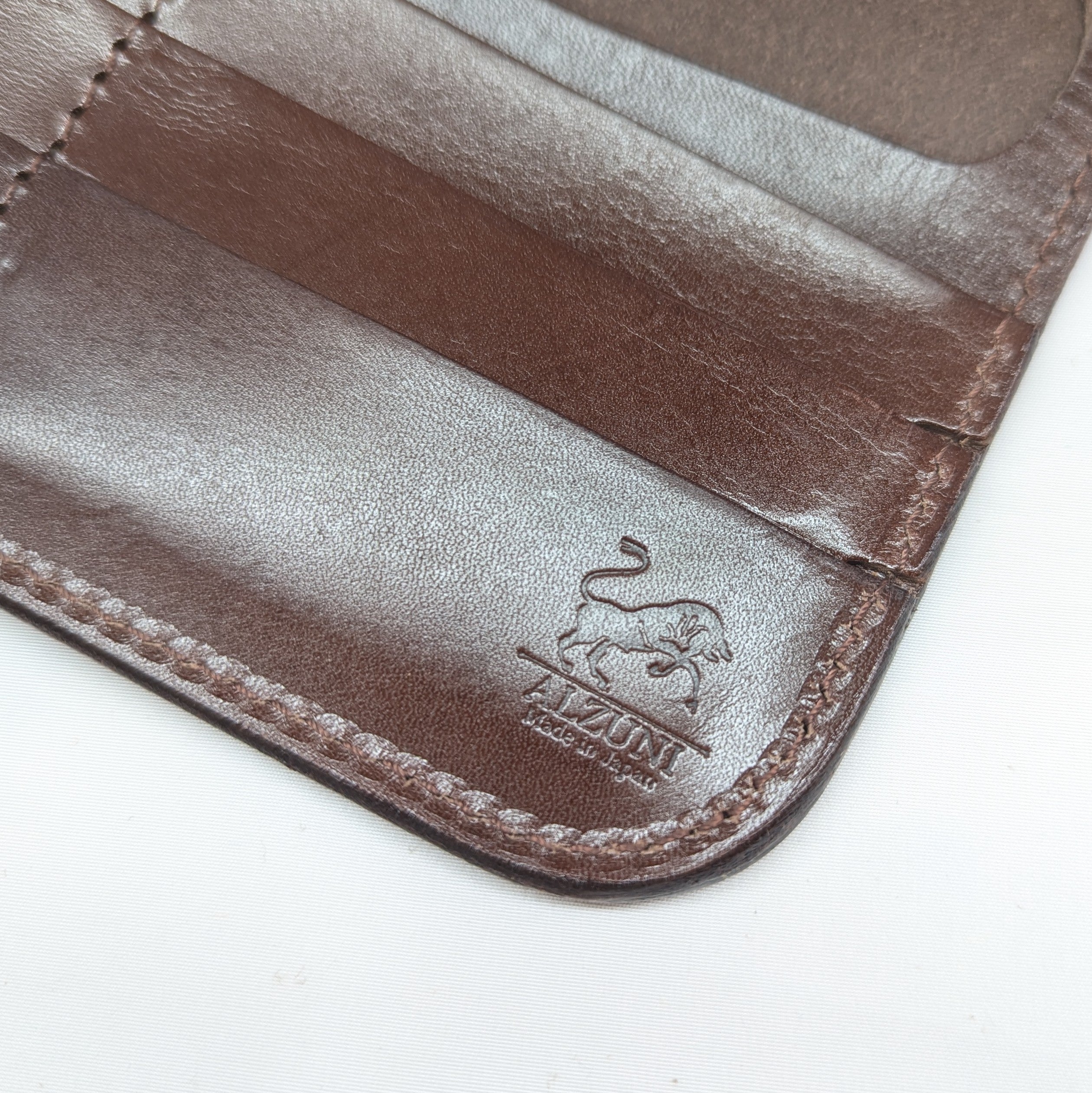 ALZUNIサイフシリーズのロングラー。ジーンズの後ろ姿を魅力的に魅せるオールドコインコンチョ付きのデザイン。二つ折り長財布ラインナップの中で内装が特にシンプルなつくりです。カンベロタイプのロングウォレット。コンチョを取り付けることで、さらに迫力が増します。2つ折りですがスリムな構造です。