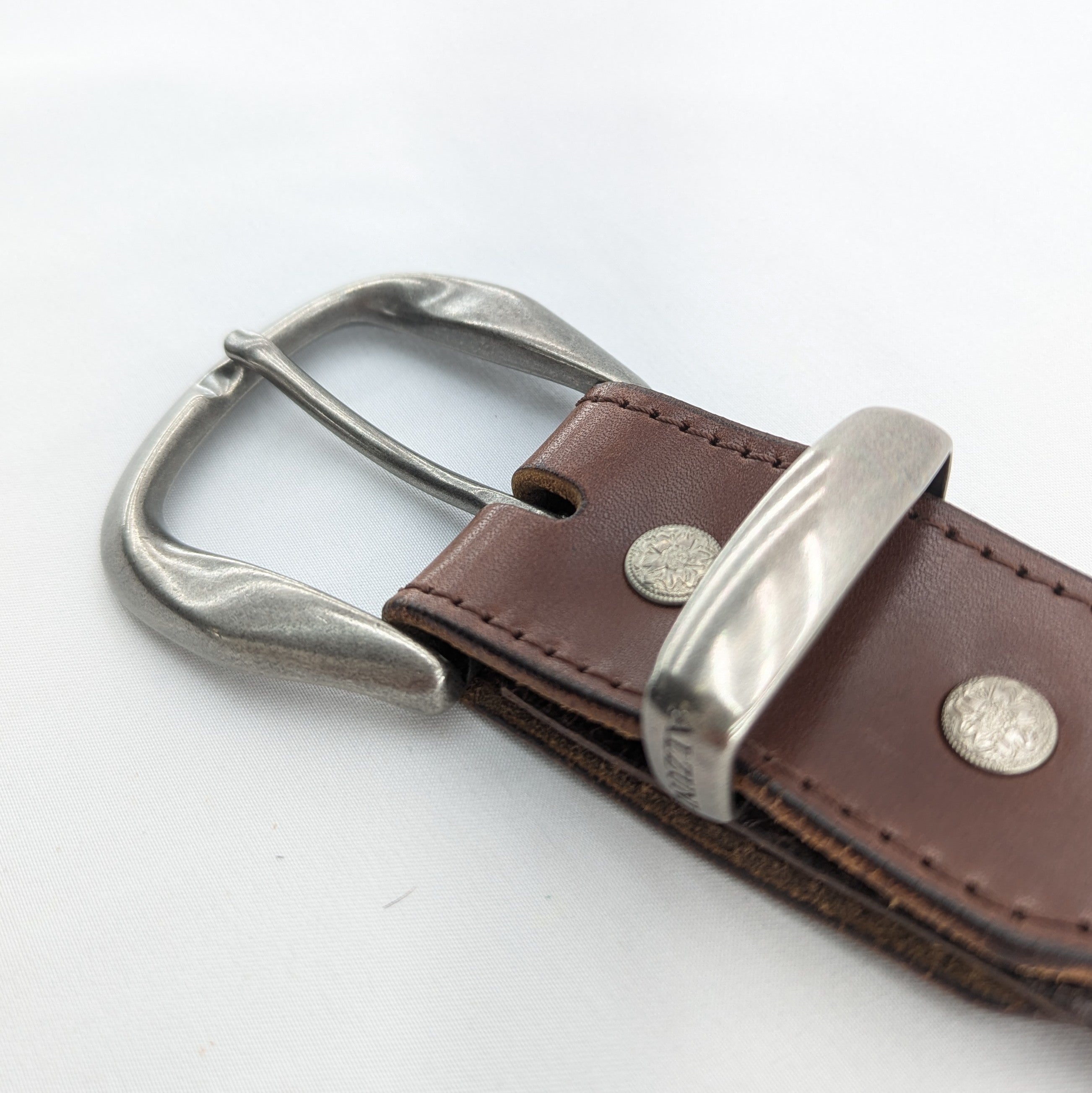 美錠の組み合わせは選択ください。サイズはパンツサイズのウエスト60cm→ベルト27インチを中心に前後に2個ずつ穴をあける5ホール式となります。