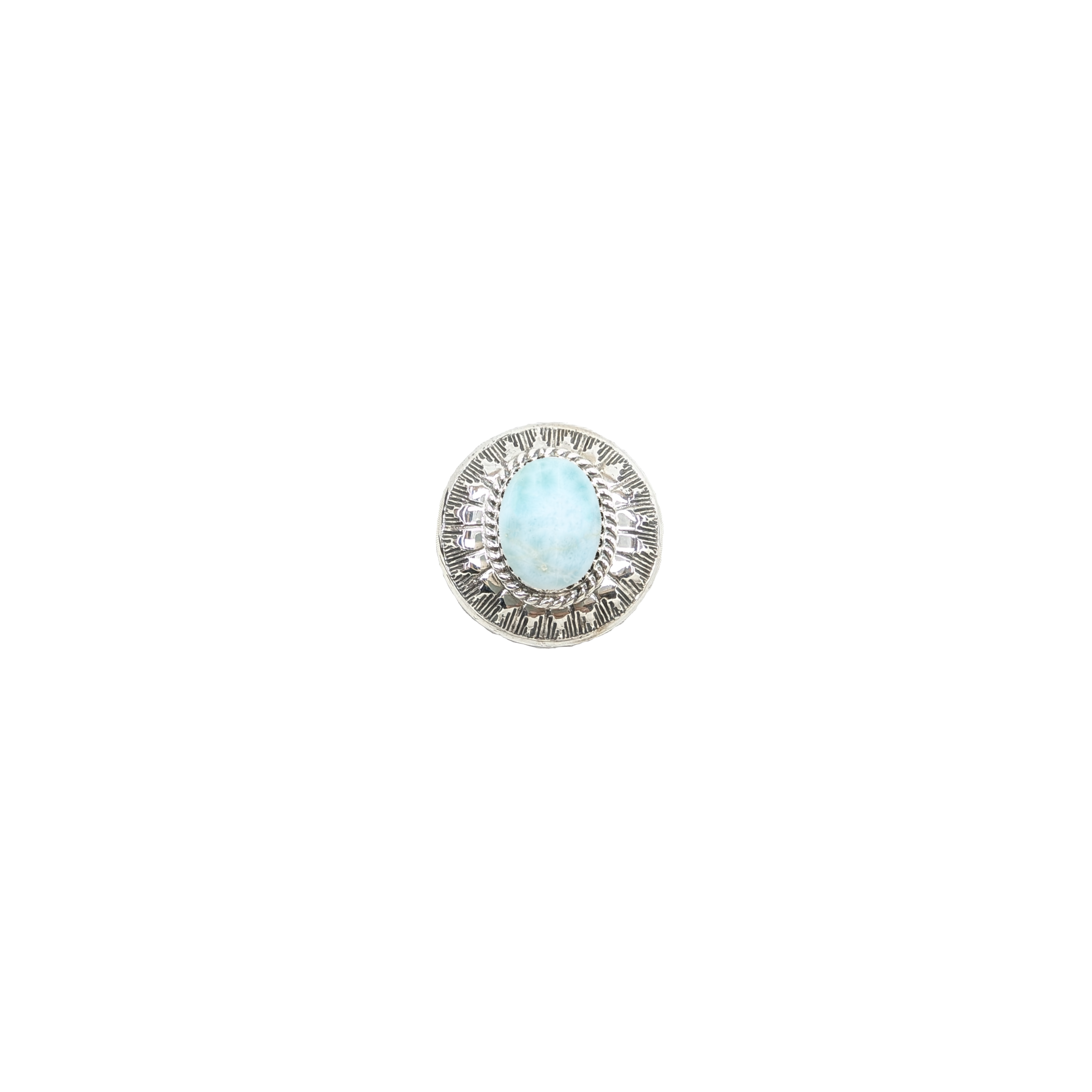 ALZUNIが誇る革製品カスタムにおすすめの商品。天然石を配したSilver950のコンチョです。(下の参考商品はオーダーいただきましたミニトートバッグにターコイズの印台コンチョを配したものです。)