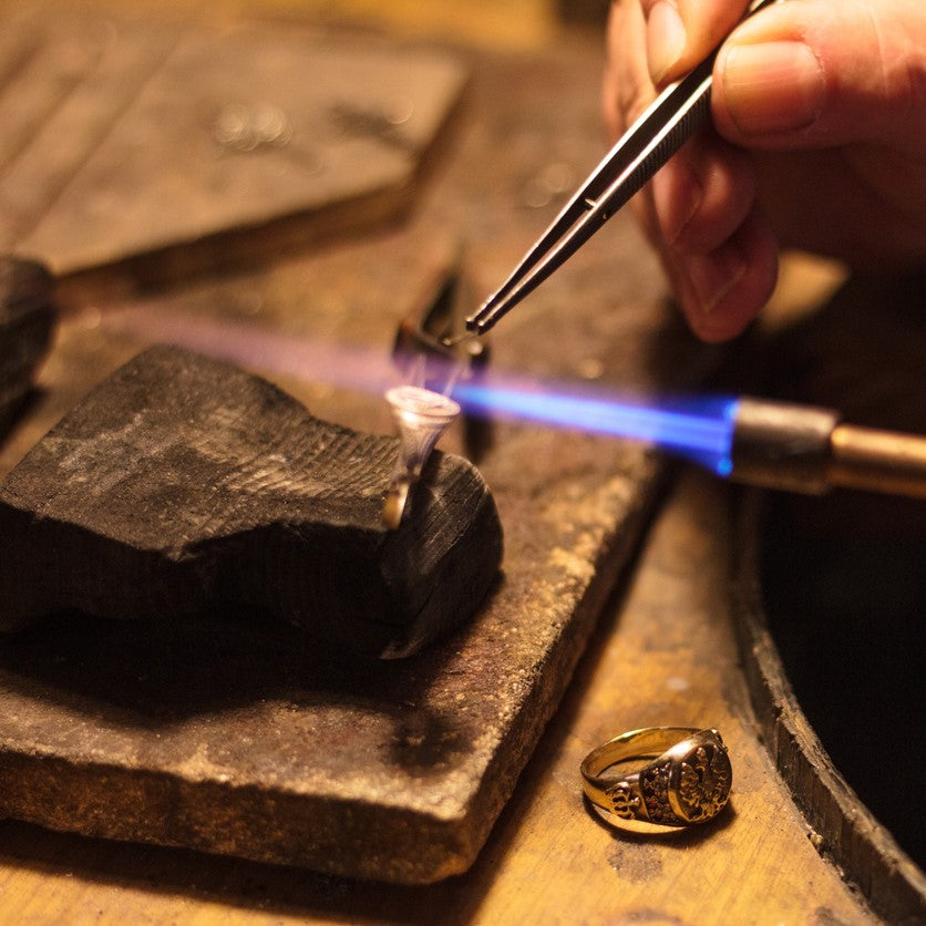②チェーンの切れてしまった部分に丸カン追加。ロウ付け致します。